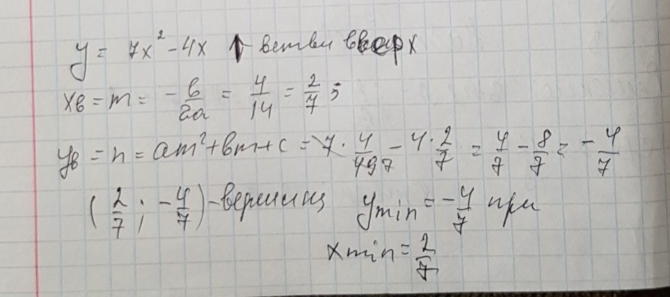 Минимум достигается тогда, когда полный квадрат обнуляется (решение приложил), то есть при х=2/7