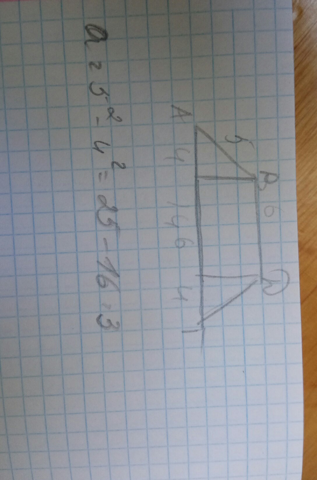 и 8 :2=4 т к трапеция равнобедренная и по Пифагора найдем высоту (написано на рисунке )