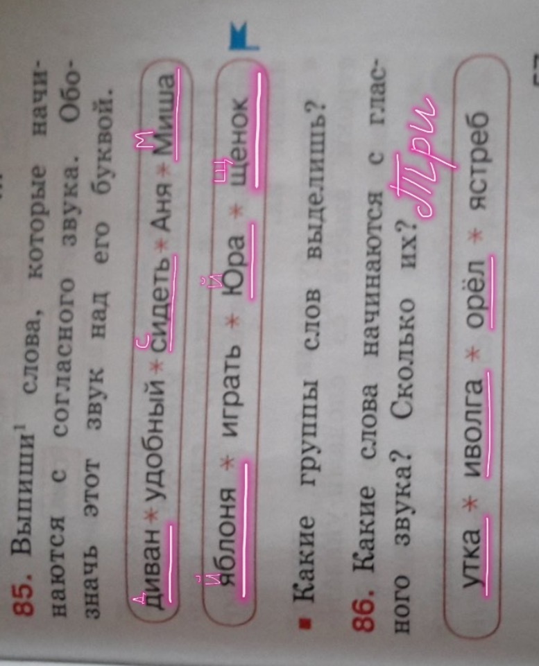 Слова, начинающиеся с гласного звука:удобный, Аня, играть