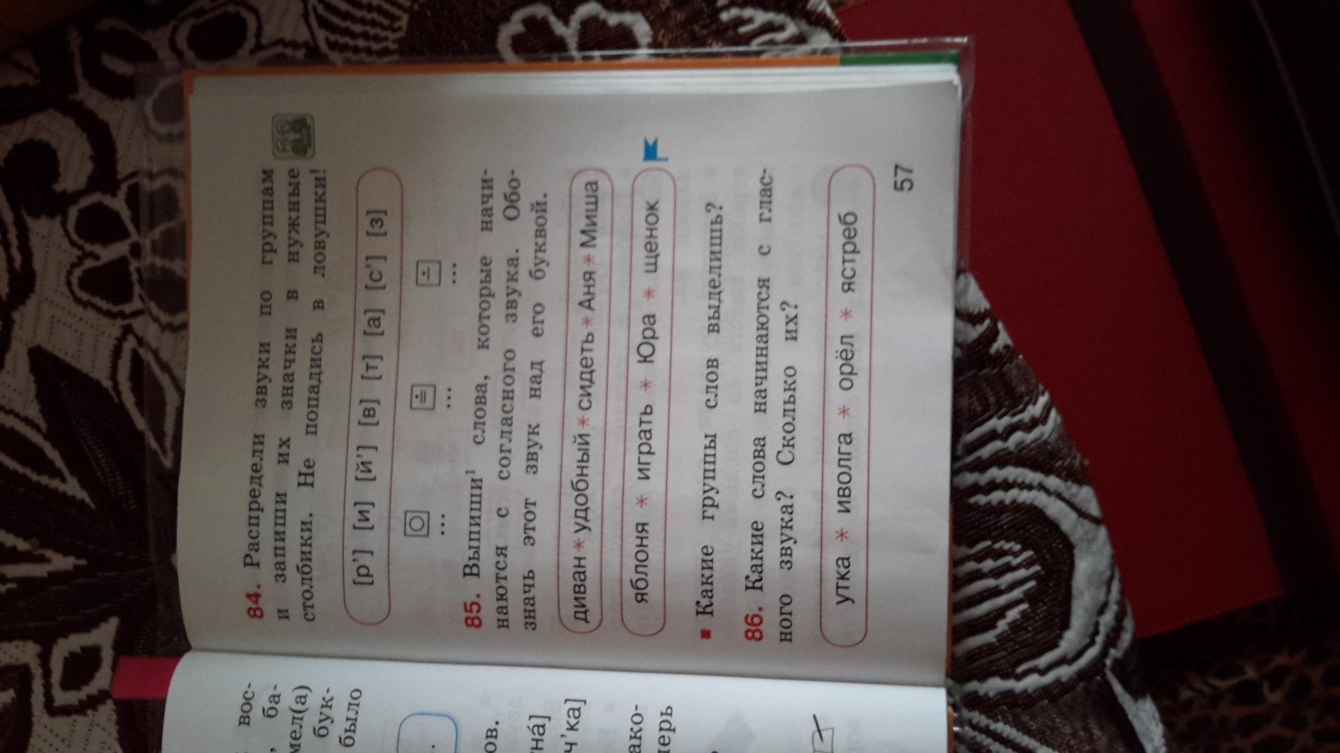 Слова, начинающиеся с согласного звука:диван, сидеть, Миша, яблоня, Юра, щенок