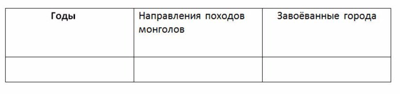 На основе информации учебника заполните таблицу "Монгольское нашествие на Русь"