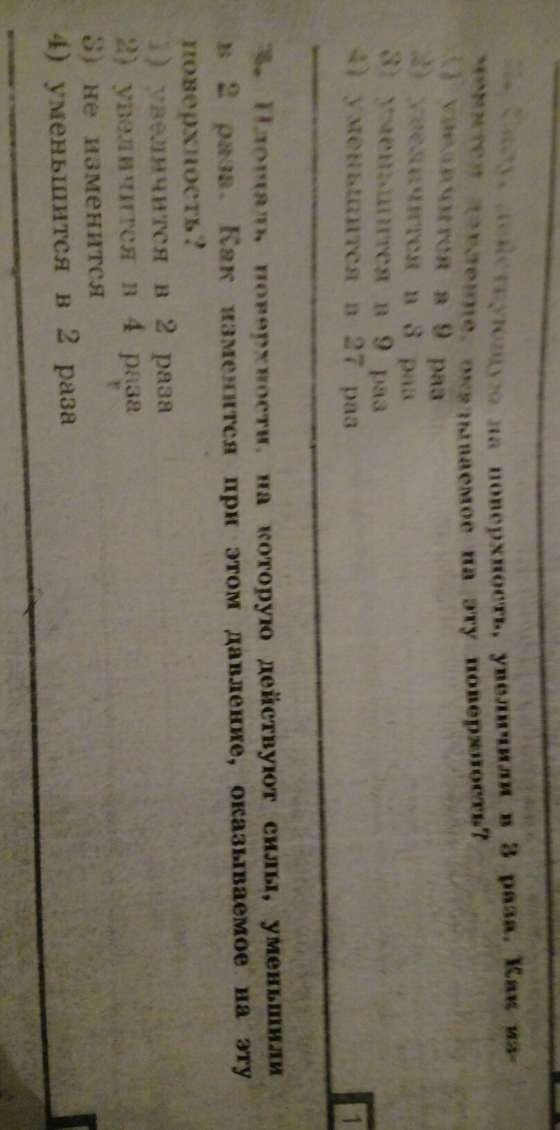 силу, действующую на поверхность, увеличили в 3 раза. Как изменится давление, оказываемое на эту поверхность?