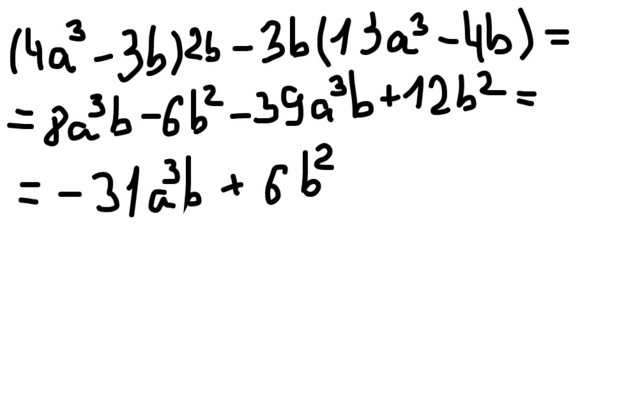 (4a^3−3b)⋅2b−3b⋅(13a^3−4b)=