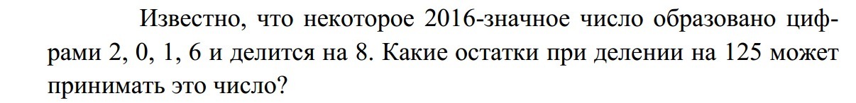 2)(016) дает остаток 16 , так как 0+16, три нуля уже делятся на 125.