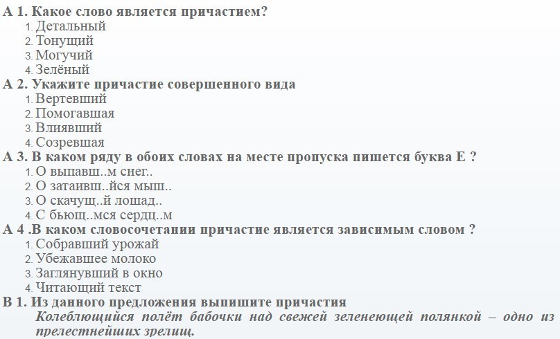 Сделайте мини тест на тему причастие причастный оборот и всё что связано с причастием.