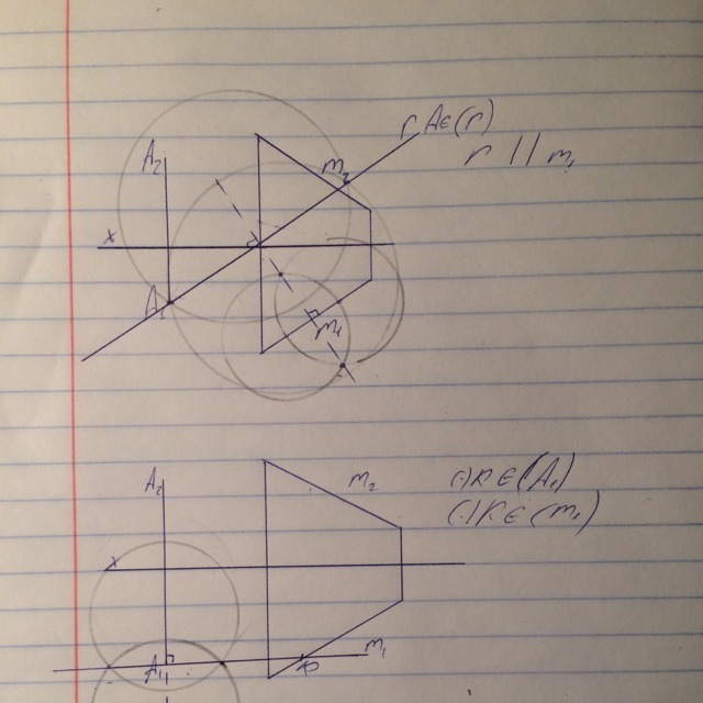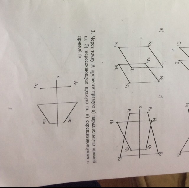 Для прямой через точку А и пересекающей m нужно на прямой А2А1 построить 2 одинаковые окружности так, чтобы точки их пересечения образовывали прямую перпендикулярные А2А1 и включающие точку А