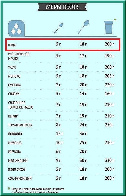 По ней легко найти основные продукты питания, а также жидкости (воду) и перевести граммы в ложки или стаканы или наоборот стаканы в гаммы