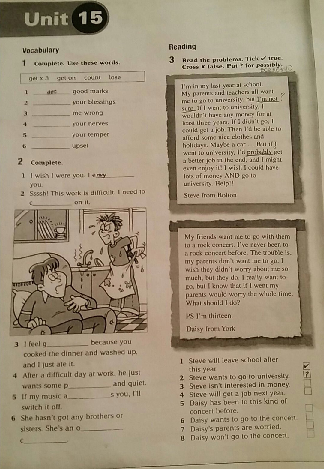 If I go to university I would not have any money for at least three years. FALSE. ( you can have some money if you are going to get a scholarship)