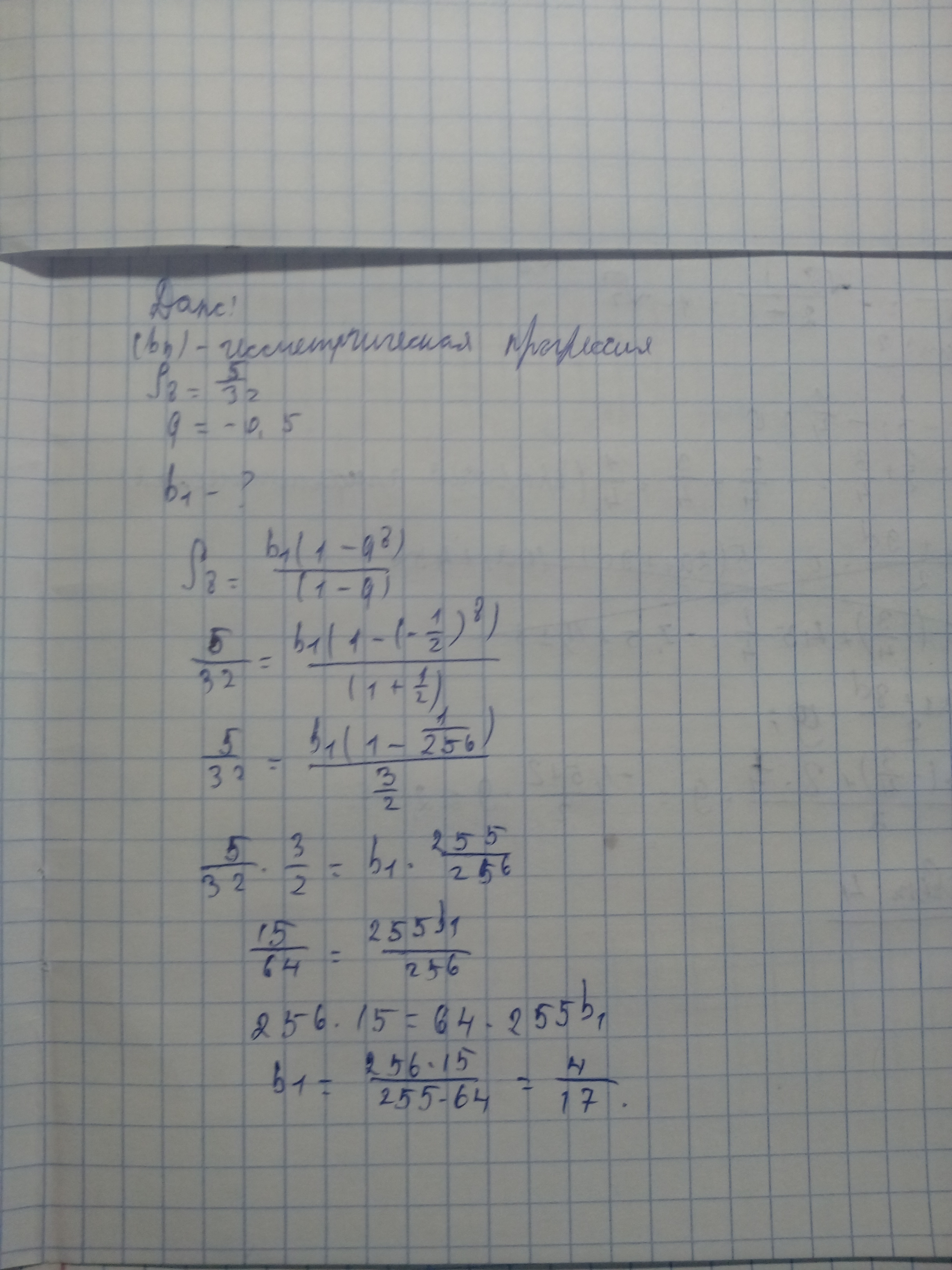 сумма первых восьми чисел геометрической прогрессии (bn) равна S8=5/32 а знаменатель q=-0.5 найдите b1