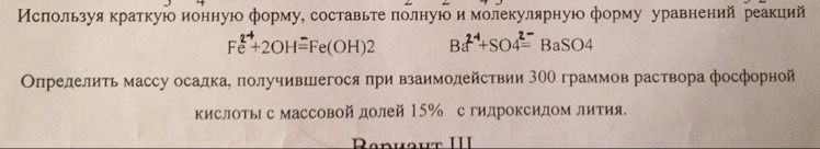 Определить массу осадка, получившегося при взаимодействии 300 г раствора фосфорной кислоты с массовой долей 15 % с гидроксидом лития