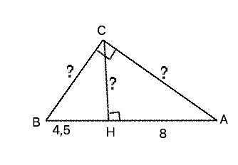 Высота прямоугольного треугольника, проведенная к гипотенузе, есть среднее геометрическое (среднее пропорциональное) между проекциями катетов на гипотенузу. ⇒ СН=√(BH*AH)=√(4,5•8)=6 см