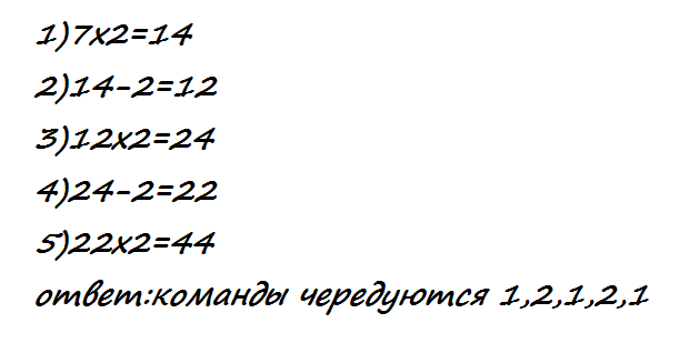 более 5 команд, которая из числа 7 получает число 44. Укажите лишь номера команд.
