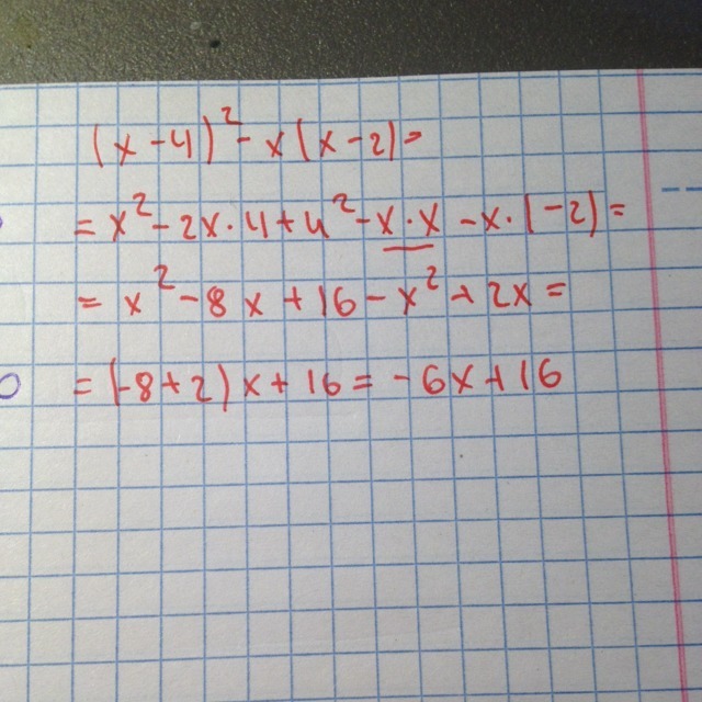 (х-4)²-х(х-2) =х²-8х+16-х²+2х=16-6х
