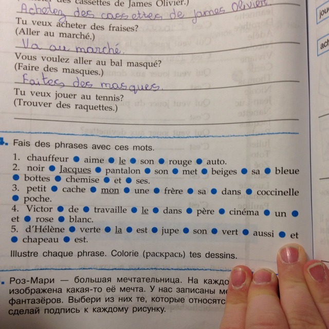 Помогите пожалуйста !!! Номер 14 , там где ещё синие точечки и написано Fais des phrases avec ces mots !!! Французский первый класс ! Заранее огромное спасибо
