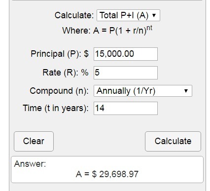 A14=15000*(1,05)^14=15000*1,9799=29698,97399159.....