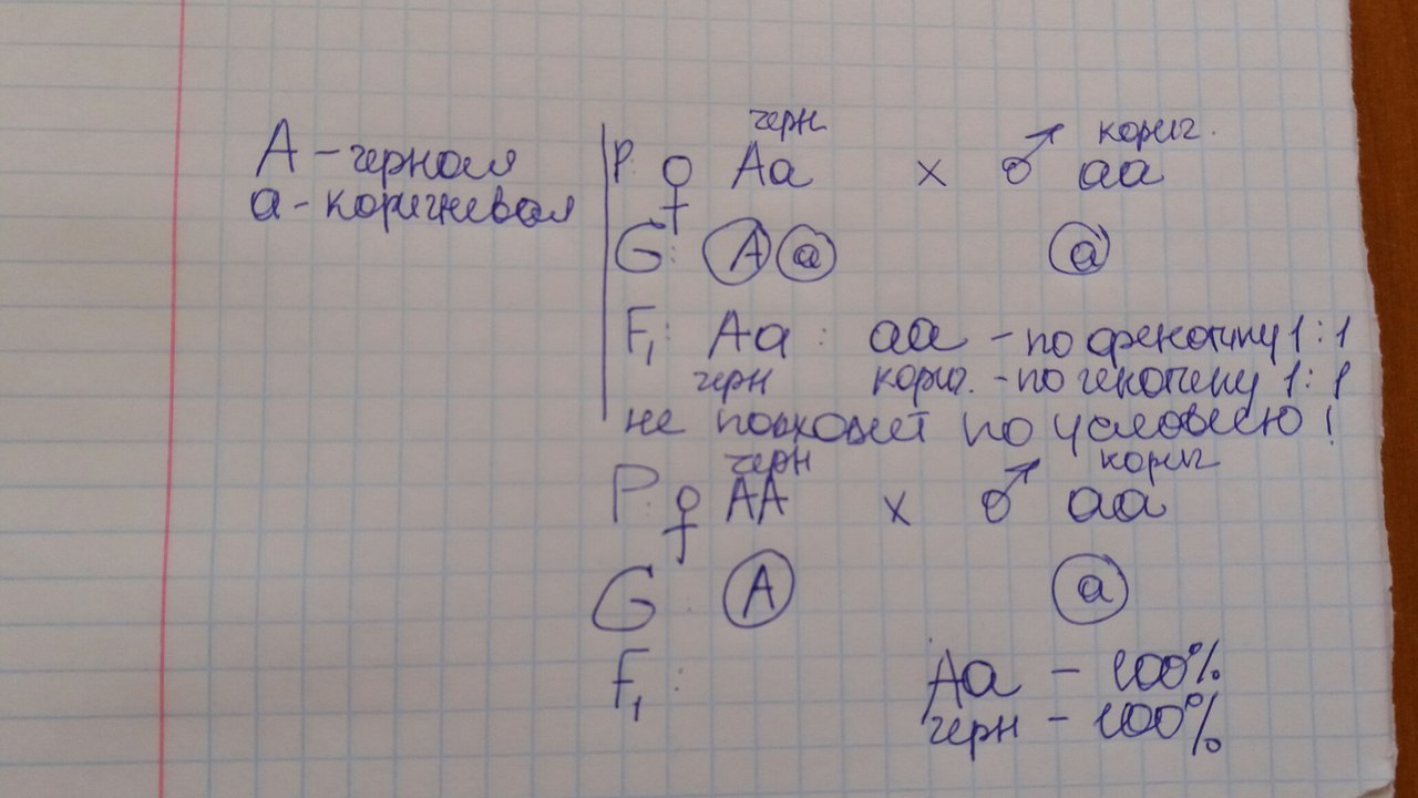 Решите задачу. У собаки черная окраска шерсти доминирует над коричневой. От скрещивания черной самки с коричневым самцом в потомстве все щенки оказались черными. 1) Какие генотипы родительских особей и потомства? Укажите генетическую закономерность.