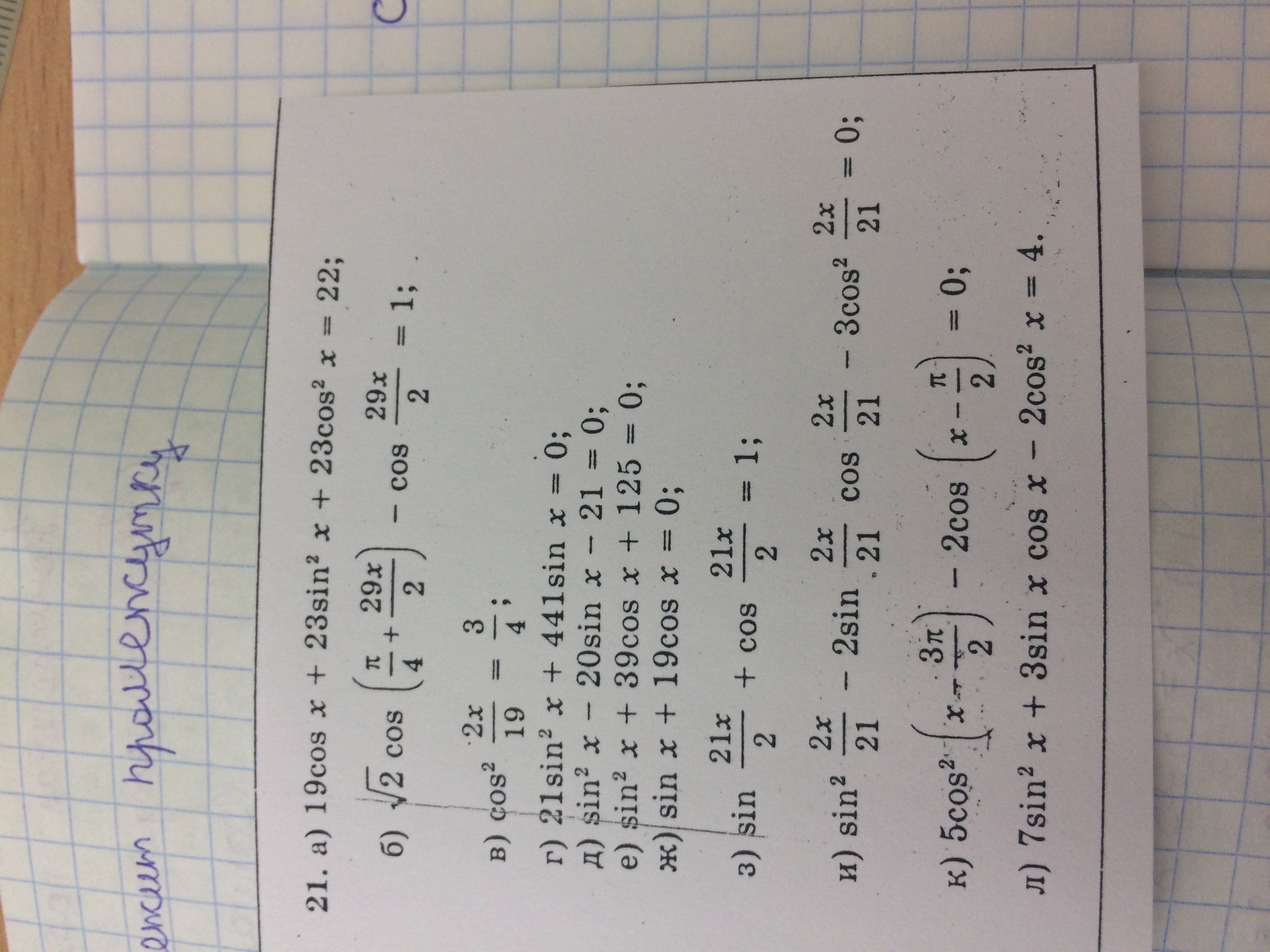 1); ; 21sin^2x+441sinx=0\\21sinxcdot (sinx+21)=0\\sinx=0; ; to ; ; underline {x=pi n,; nin Z}\\ili; ; ; sinx+21=0; ; ; to ; ; ; sinx=-21 textless  -1; net; reshenij\\2); ; sin^2x-20sinx-21=0\\t=sinx; ,; ; ; t^2-20t-21=0; ,; ; t_1=-1; ,; ; t_2=21; (teor.; Vieta)\\sinx=21 textgreater  1; ; to ; ; net; ; reshenij; ,; t.k.; ; -1 leq sinx leq 1\\sinx=-1; ; to ; ; ; underline {x=-frac{pi}{2}+2pi n,; nin Z}
