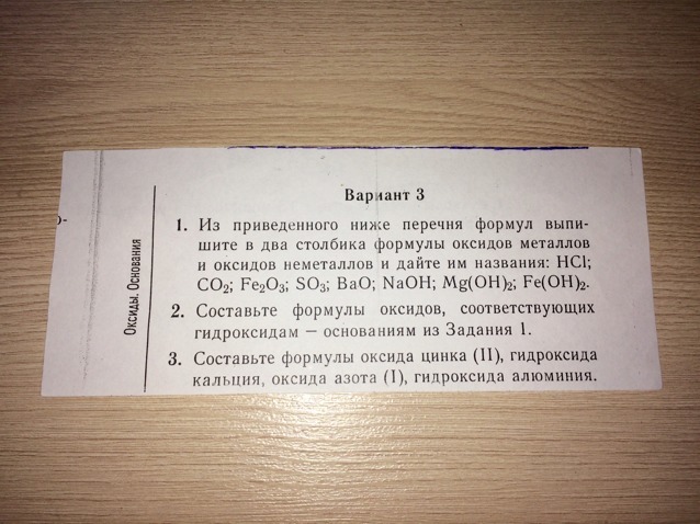 Из приведённого ниже перечня формул выпишите в два столбика формулы оксидов металлов и оксидов неметаллов и дайте им название
