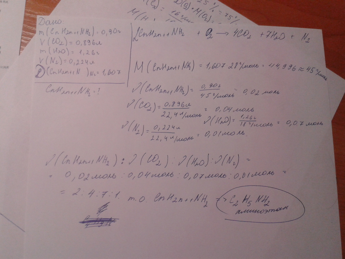 При сгорании 0,90г газообразного органического вещества выделилось 0,896 л (н.у.) углекислого газа, 1.26 г воды и 0.224 л азота. Плотность газообразного вещества по азоту равна 1.607. Установите молекулярную формулу органического вещества. Помогите пожайлуста решить, только распишите подробно как решать. Заранее спасибо.