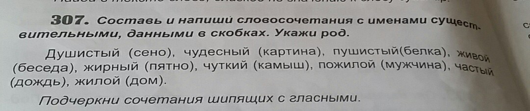 составь и напиши словосочетания с имен существительными, данным в скобках. номер 307