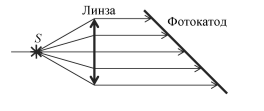 В установке по наблюдению фотоэффекта свет от точечного источника S, пройдя через собирающую линзу, падает на фотокатод параллельным пучком. В схему внесли изменения: на место первоначальной линзы поставили собирающую линзу того же диаметра, но с меньшим фокусным расстоянием. Источник света переместили вдоль главной оптической оси линзы так, что на фотокатод свет снова стал падать параллельным пучком. Как изменился при этом(уменьшился или увеличился) фототок насыщения? Объясните, почему изменяется фототок насыщения, укажите, какие физические закономерности вы использовали