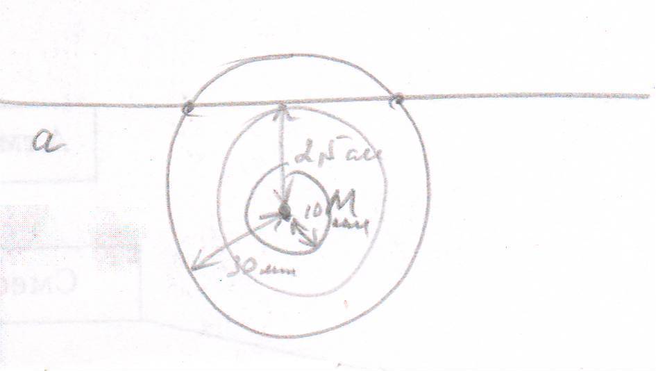 Начертить прямую а. Отметьте точку М на расстоянии 2.5 см от прямой а. Как относительно прямой а расположена окружность с центром в точке М и радиусом: а) 30 мм; б) 25 мм; в) 10 мм?