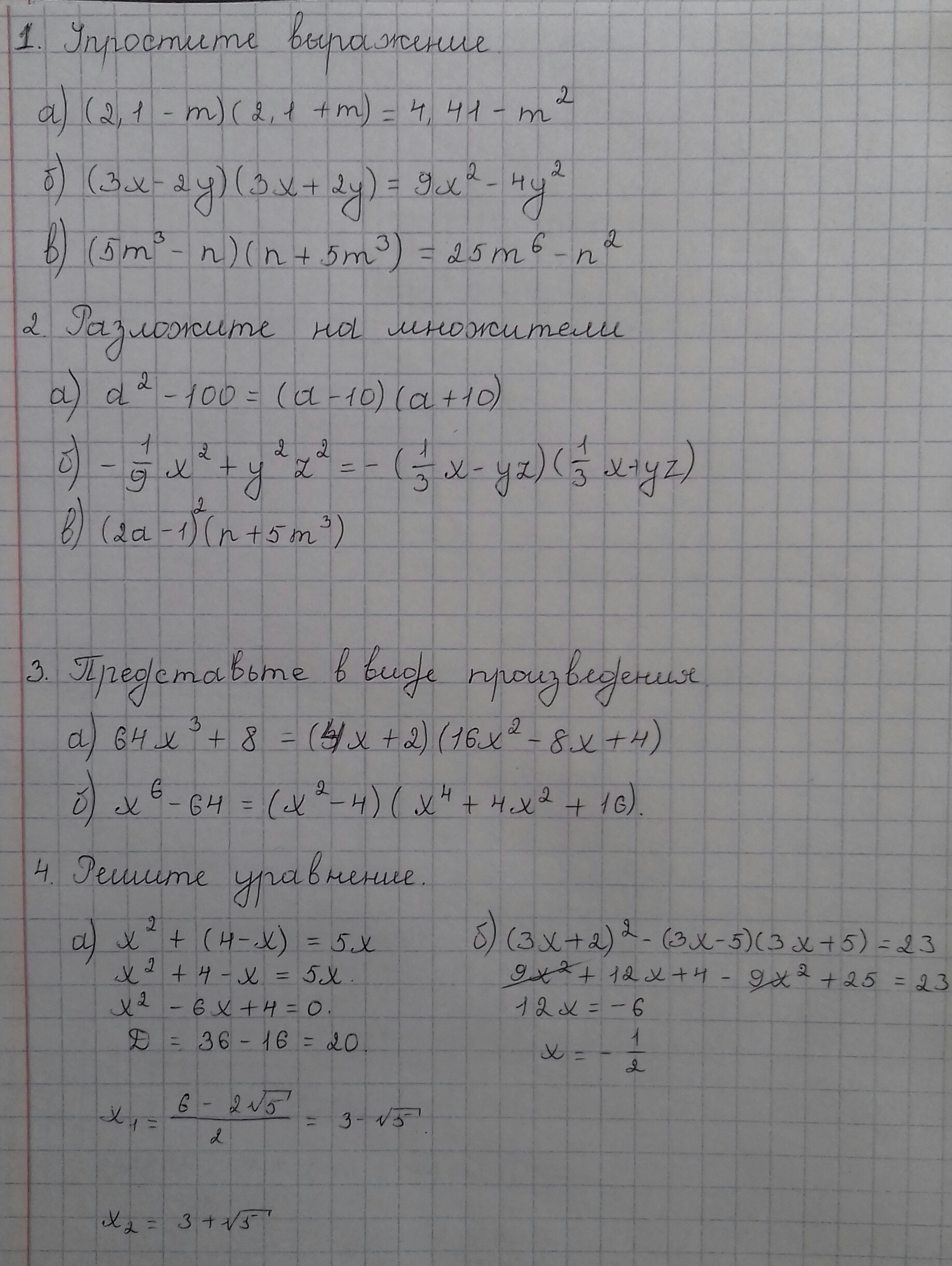 а) (2,1-m)(2,1+m)=?