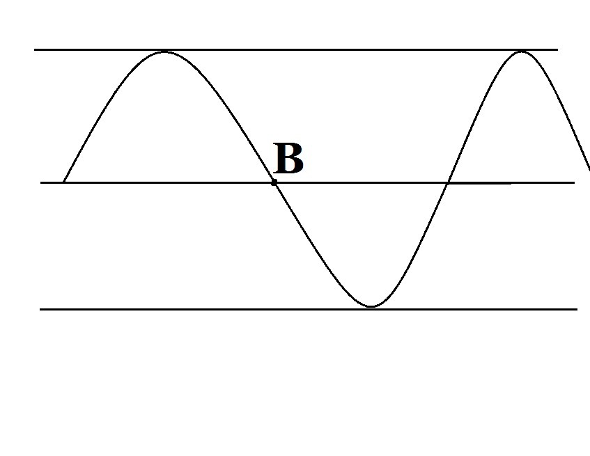 На рис. изображена поперечная волна в нек. момент времени. Что можно сказать о скорости движения точки В: