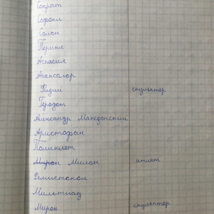 личности краткро таблицу Сократ Софокл Солон Перикл Аспасия Анаксагор Фидий Геродот Александр Македонский Аристофан Поликлет Мирон и Милон Фемистокол Мультиад