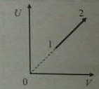 на рисунке показан процесс изменения состояния одного моля одноатомного идеального газа (U-внутренняя энергия газа; V- занимаемый им объем). Как изменяется в ходе этого процесса абсолютная температура, давление и теплоемкость газа? Для каждой величины определите соответствующий характер изменения: