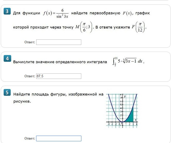 По поводу 5-го задания. у=1/2х^2 определяется следующим образом. Общий вид параболы у=ах^2+ах+с. с-ордината точки пересечения графика с осью ОУ (у нас 0). Теперь берем х=-2, у=2. Подставляем в выражение у=ах^2+ах: 4а-2в=2.