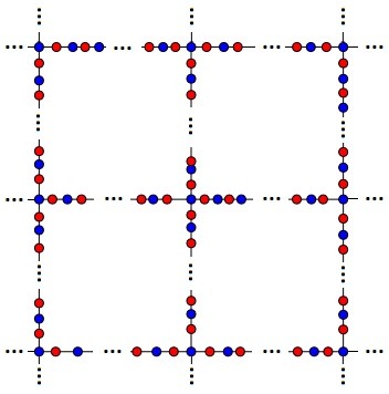 Из синих и красных маленьких бусинок Катя сплела большой узор, представляющий из себя квадрат 120×120 с внутренними линиями. Известно, что каждая синяя бусина касается только красных и наоборот (каждая красная касается только синих), и при этом все узлы (пересечения внутренних линий друг с другом и пересечения внутренних линий со сторонами) и все вершины квадрата оказались синими бусинками. На сколько больше было использовано красных бусинок, чем синих?
