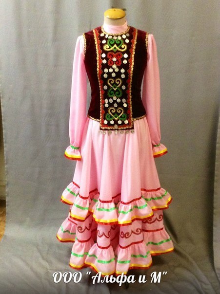 Характерной особенностью костюма являлась его многослойность. Вне зависимости от погодных условий башкиры надевали под нижнюю одежду несколько слоёв верхней. Особенно в таких нарядах являлись на национальные праздники.Цвета и оттенки. Традиционно в создании народных башкирских костюмов используют природные оттенки. Основными цветами являются синий, чёрный, зелёный, красный, коричневый и жёлтый. Используют и другие оттенки, но они, как правило, предназначены не для повседневной одежды, а для праздничных костюмов.Ткани и крой. Одежда башкирского народа создавалась с целью сохранения тепла в зимнюю пору и удобства летом. Да и из религиозных соображений башкиры не могут позволить себе носить открытую одежду. Поэтому национальный костюм имеет свободный крой. Обычно это длинные приталенные халаты, свободные штаны и рубашки. При выборе тканей предпочтение отдаётся шёлку, бархату, сатину. В отделке используется кожа, мех, различные бусины, монеты и вышивки.Женский костюм. Национальный женский костюм формировался не один десяток лет и продолжает приобретать изменения по сей день. Отличительный признак такой одежды – это богатство и роскошь.На шею поверх платья, женщины надевали нагрудник. Считалось, что такой атрибут служит оберегом от злых духов.Под платье было принято надевать ыштан (своеобразные штаны), а поверх, украшенный серебряными монетами, камзол. Украшали его различным образом, всё зависело от региона.