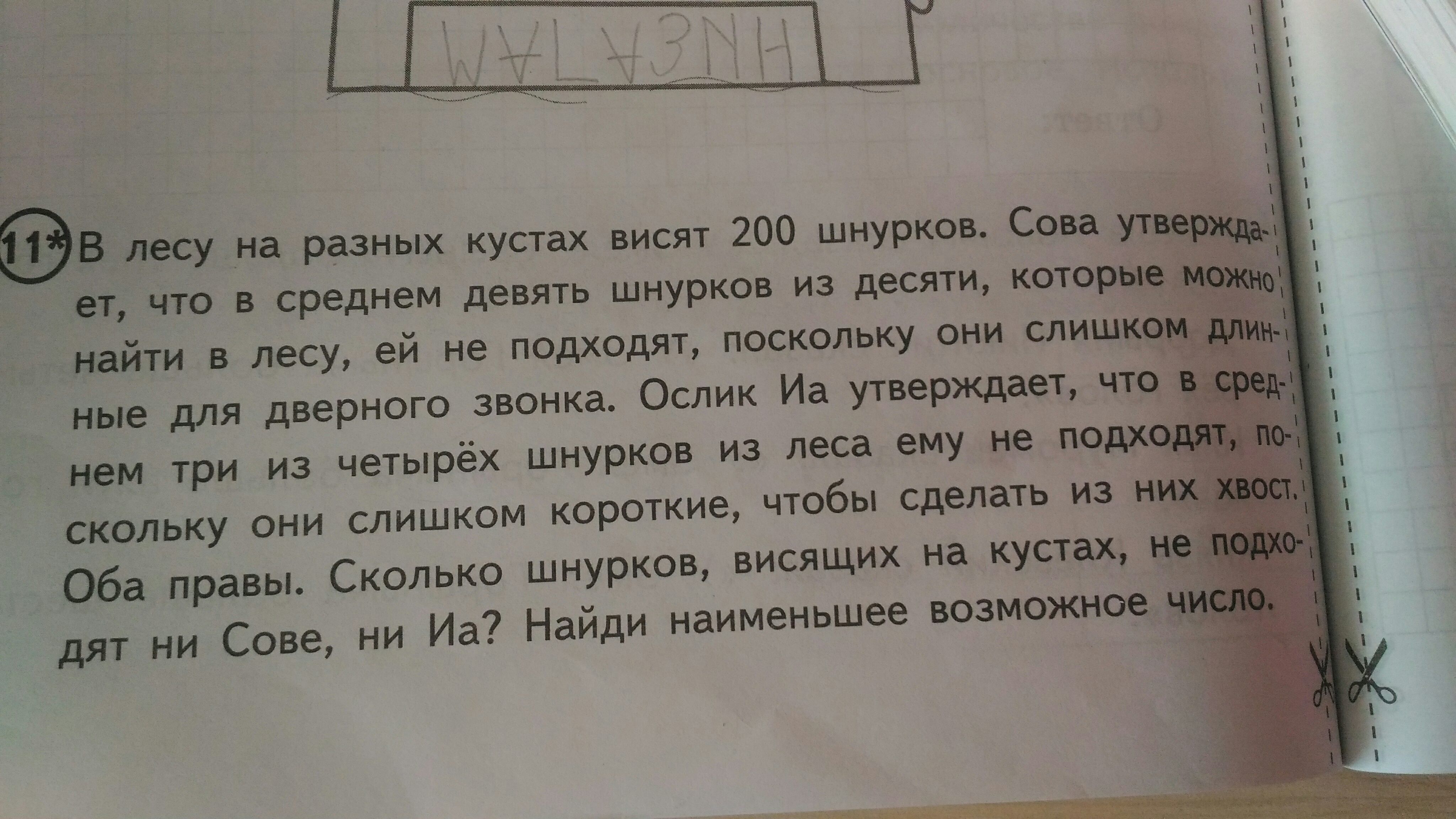Ответ: 150 шнурков не подходят ни ослику, ни сове.