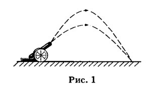 На рисунке 1 изображены траектории полёта снарядов. Равны ли для этих движений пройденные снарядами пути? Перемещения?