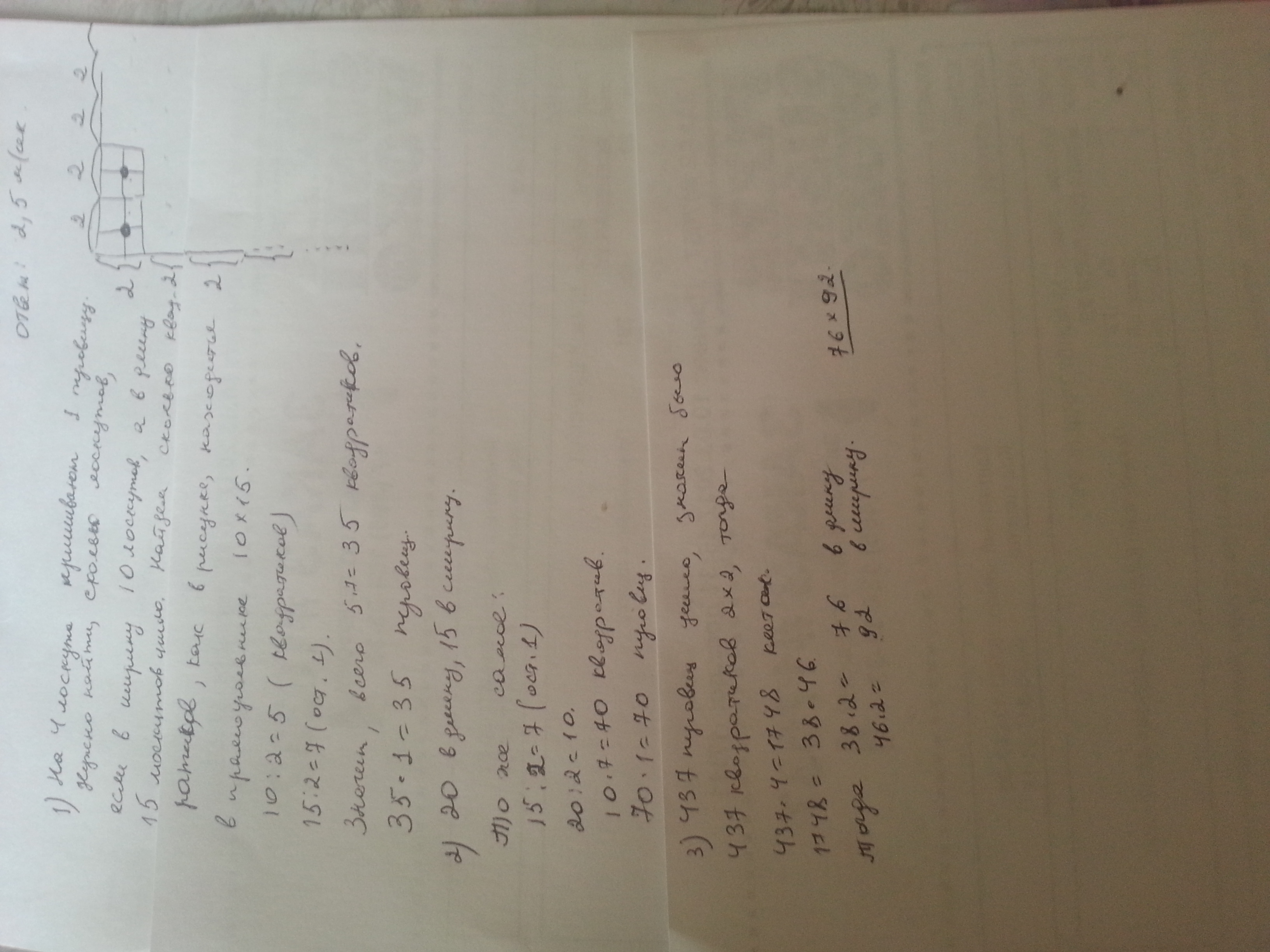2) Сколько лоскутов в ширину и сколько в длину ушло на пошив одеяло если было пришито 437 пуговиц ?