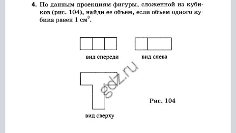 Фигура сложена из 5 кубиков, 5 × 1 = 5 см³
