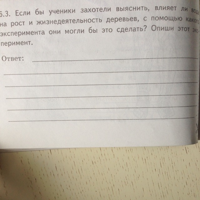 Можно посадить два дерева. Одно поливать а другое нет и смотреть как они растут. Какое растёт плохо и вянет, а какое хорошо.