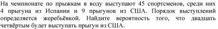у тебя всего 45 спортсменов значит вероятность будет равна =9/45