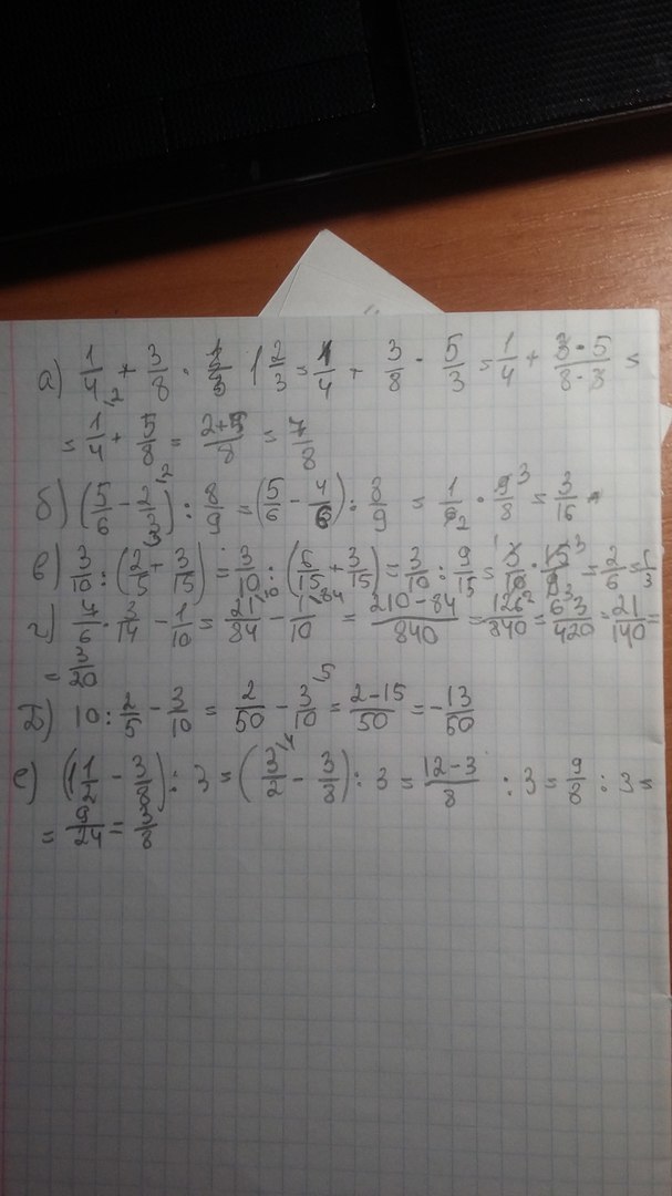 е)1)1 1/2-3/8=3/2-3/8=12-3/8=9/8=1 1/8 2)9/8 / 3/1=9*1/8*3=3/8
