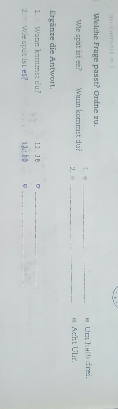 Wann kommst du? - Um halb drei.