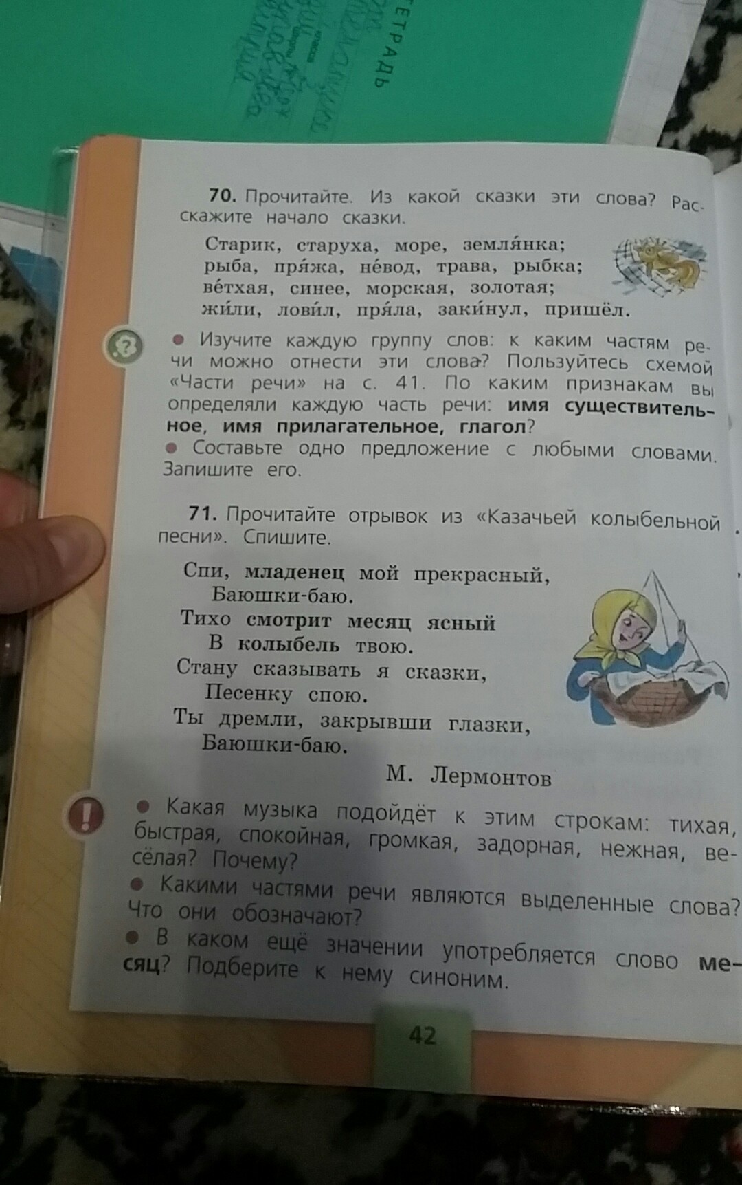 К примеру предложения: ветхая (какая) землянка (что?) землянка (что делала?) стояла (у чего?) у моря (какого) у синего моря.