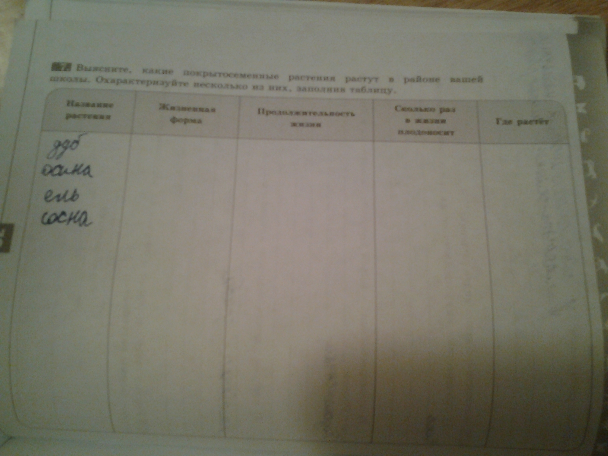 выясните какие покрытосеменные растения растут в районе вашей школы Охарактерезуйте несколько из них заполнив таблицу