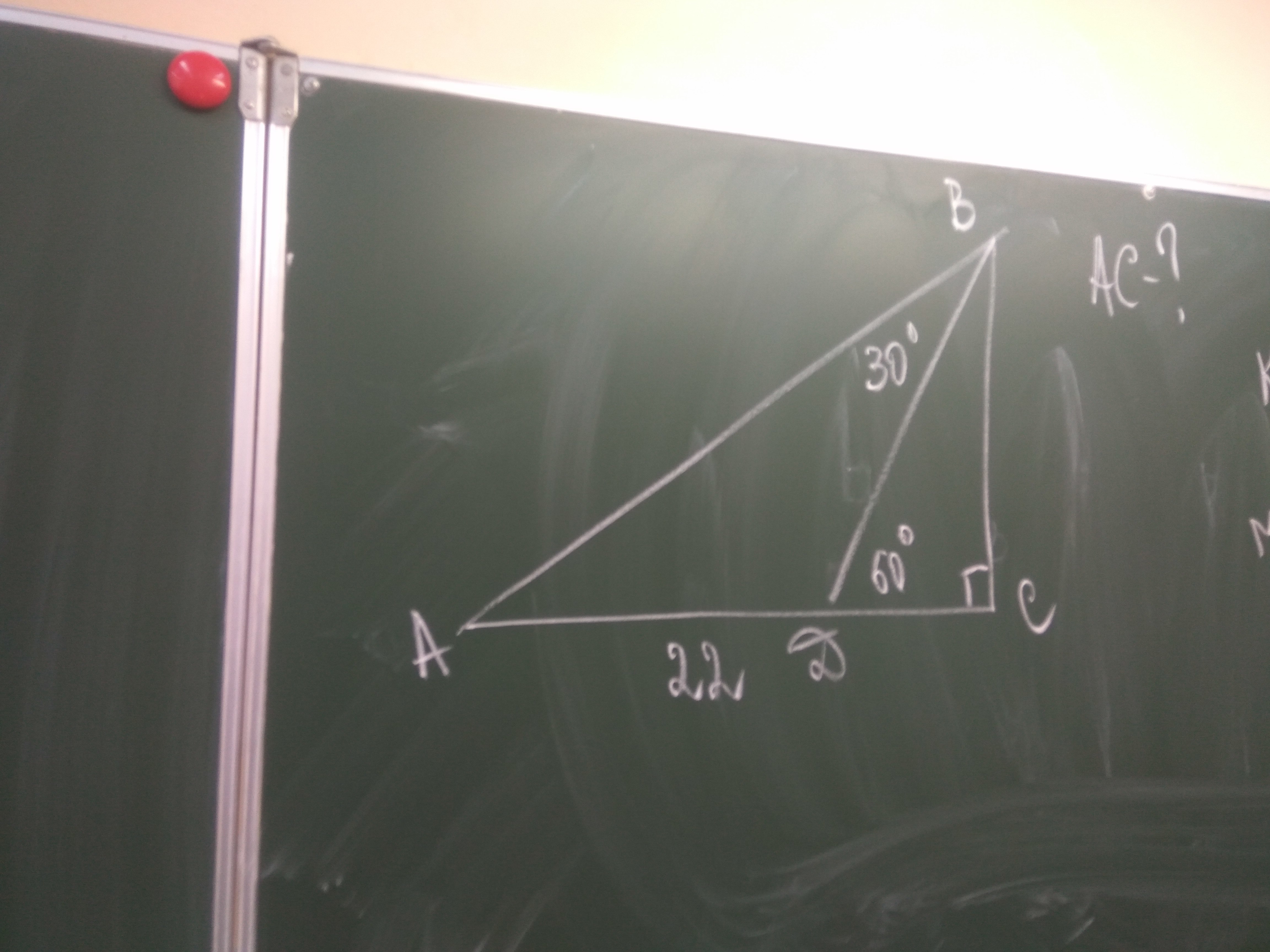 Треугольник ADB - равнобедренный с основанием АB (Угол ADB=180-60=120градусов => Угол А=180-120-30=30 градусов) т.е. DB = 22 см