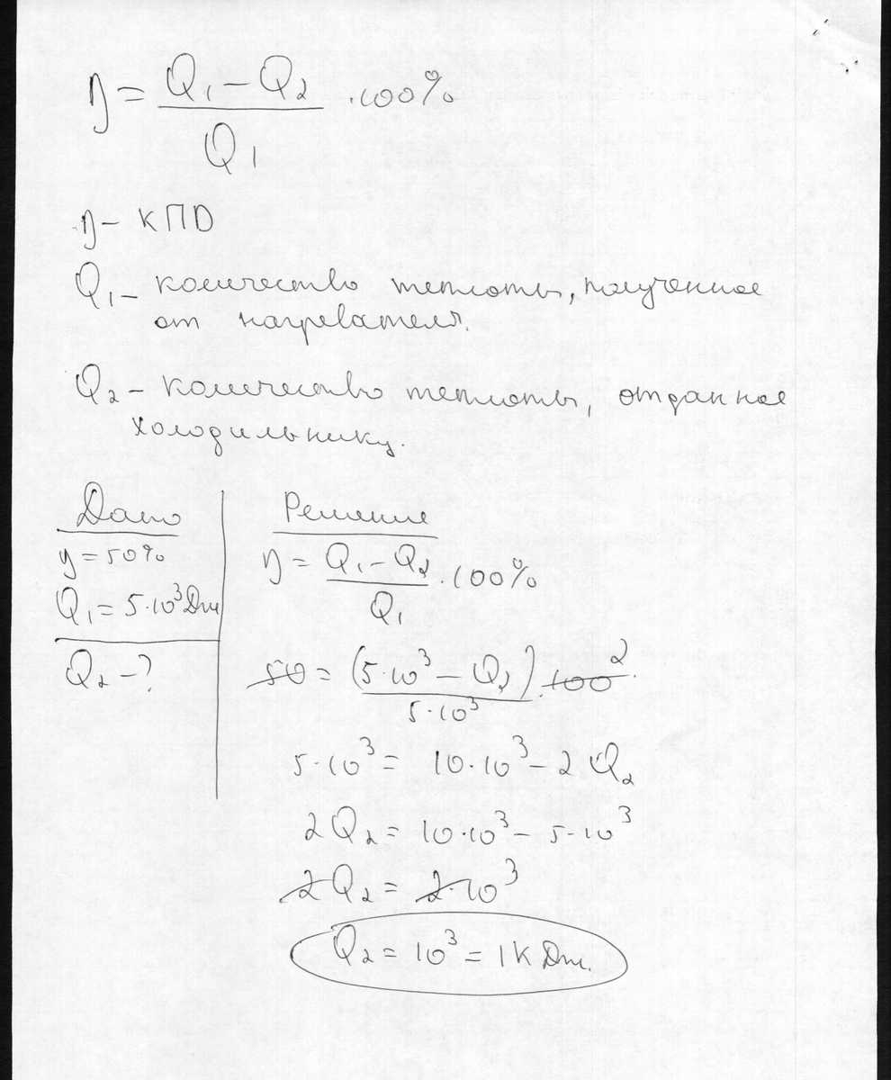 КПД идеального теплового двигателя 50%. Газ получил от нагревателя 6кДж теплоты.какое количество теплоты отдано холодильнику?
