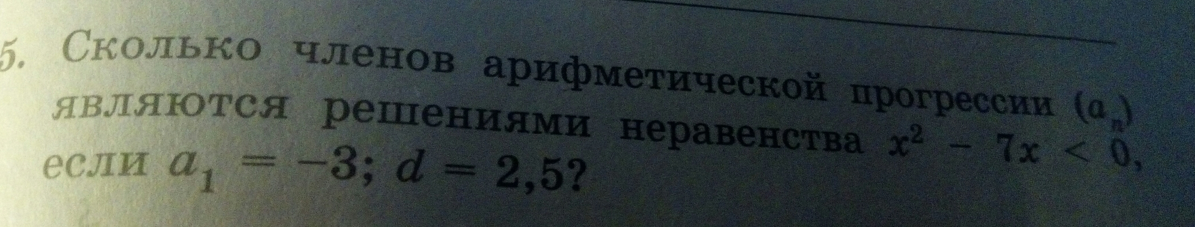 Сколько членов арифметической прогрессии являются решением неравенства х²-7х<0, если а1=-3,d=2,5?