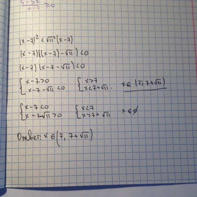 (x - 7)(x - 7) - √11(х - 7) < 0