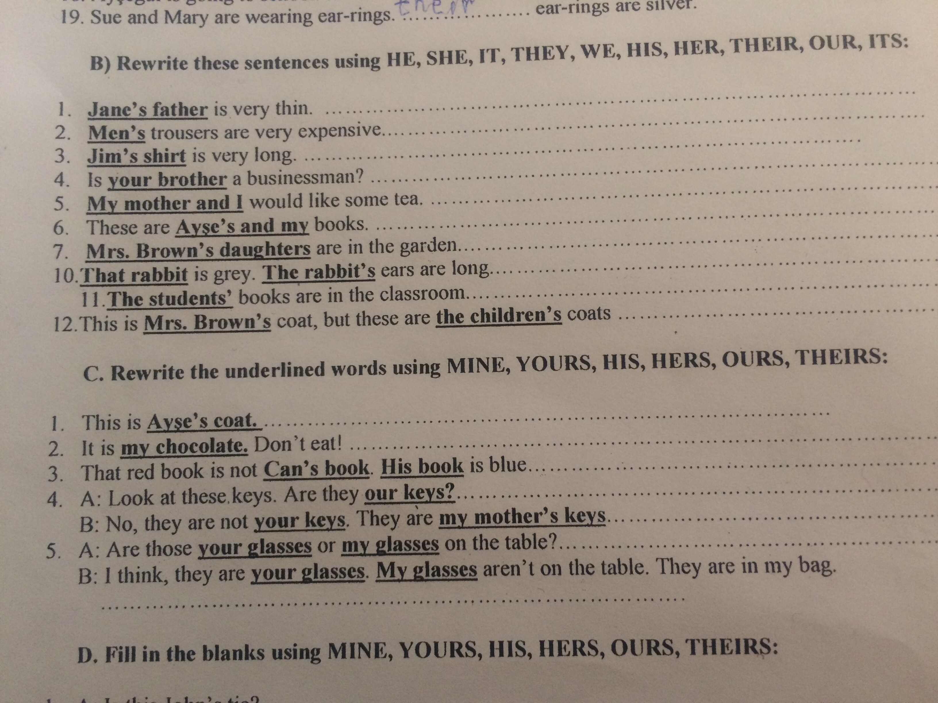 5. Are those glasses yours or mine? I think they are yours. Mine aren't on the table. They are in my bag.