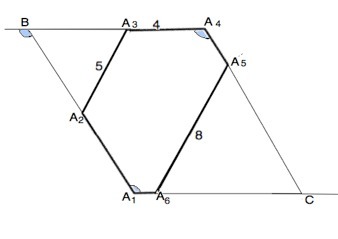 Продлим стороны А1А2 и А4А2 до пересечения в точке В, и стороны А4А5 и А1А6 до пересечения в точке С.