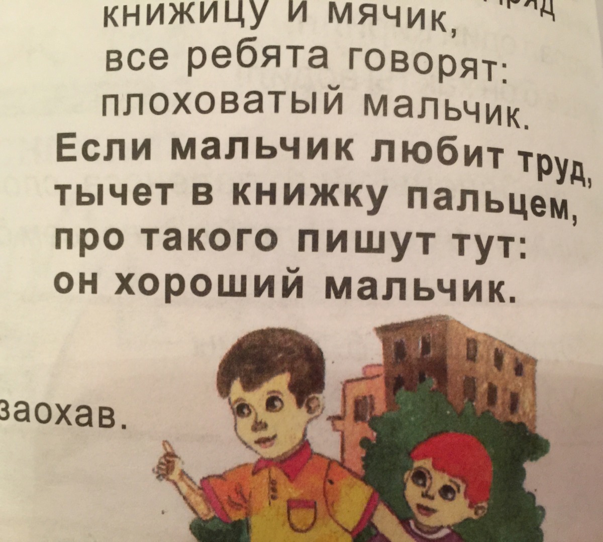 кнИжицу, И, мЯчик, всЕ, ребЯта,говорЯт,плоховАтый, мАльчик, Если, мАльчик, лЮбит, трУд, тЫчет, в кнИжку,пАльцем, прО, такОго, пИшут, тУт, Он, хорОший, мАльчик.